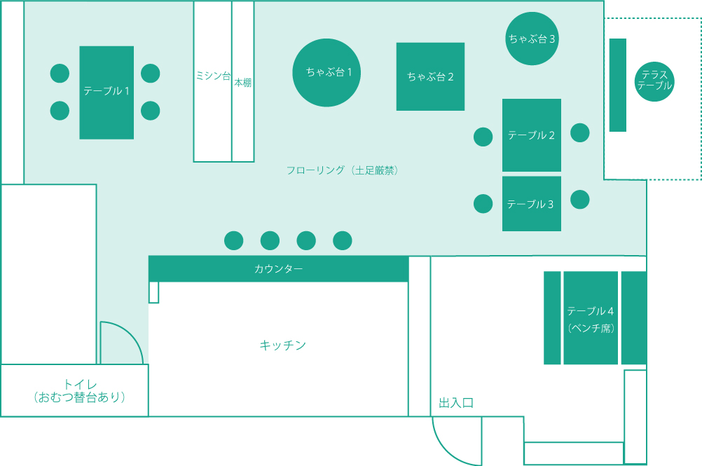 レッスンやワークショップ、ワンデイレストランからママ友会、歓送迎会、会議・MTGなどにご活用いただけます。